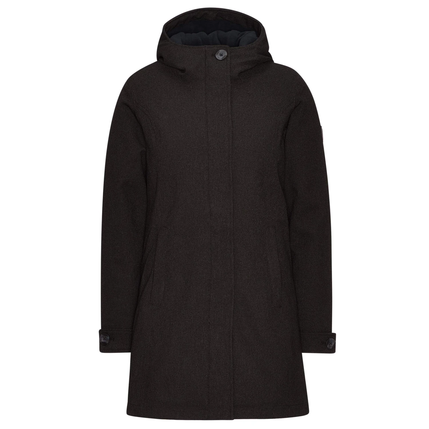 Die Außenseite von Schnieke hat einen angenehm weichen, texturierten Griff, ähnlich wie Baumwolle. Auf den ersten Blick würde man deshalb gar nicht vermuten, dass der Mantel mit seiner Wassersäule von 10.000 mm absolut wasserdicht ist. Auch kaltem Wind bietet der winddichte Mantel zuverlässig die Stirn. So macht selbst nasskaltes Schietwetter richtig Spaß! Das Material ist stark atmungsaktiv und sorgt so für ein angenehmes Körperklima.