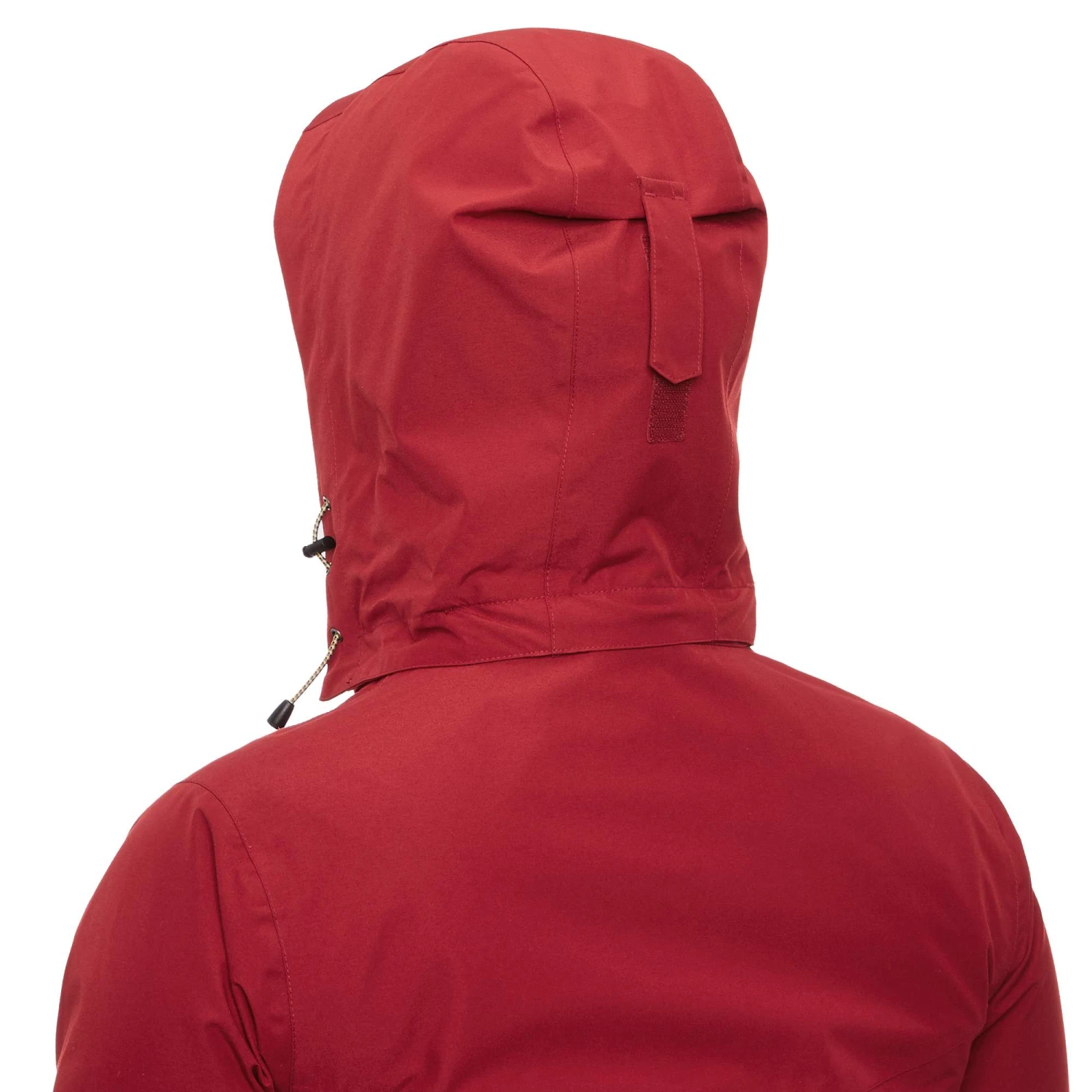 - Abnehmbare Kapuze mit Volumenregulierung vorne und hinten (dort mit einfachem Klettverschluss)